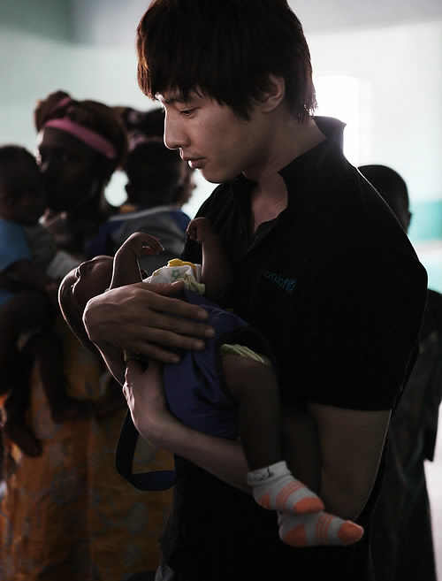 원빈은 2007년 9월 유니세프특별대표에 임명된 이후 2008년 중국 쓰촨성과 2009년 인도네시아 수마트라 지진피해지역 등을 위해 꾸준히 성금을 기부해왔다. 또한 아프리카와 아시아의 최빈국인 감비아와 동티모르를 방문해 봉사활동을 펼치는 등 그동안 어린이 구호를 위해 많은 활동을 해왔다. (사진 = 연합뉴스)
