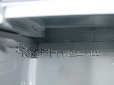 속상한 마음 달래며 얼어버린 과일이며 야채들 다 버려야 했지만 믿었습니다. 하지만 그건 큰 오산이었습니다. 2011.3. 다시 시끄러운 소음이 발생해 살펴보니 냉장실 안쪽에 금이 가고 있었습니다.