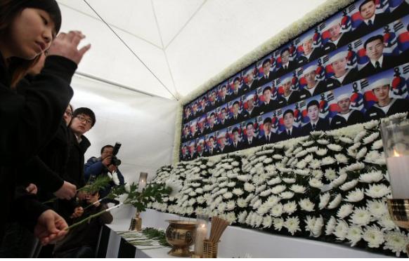 '천안함'(1천200t급)이 서해 백령도 해상에서 피격된 지 26일로 1년이 된다. 천안함 피격 1주기를 맞아 다양한 추모행사와 함께 고인들이 잠들어 있는 국립 대전현충원 합동묘역 등에는 남녀노소 참배객들의 발길이 끊이지 않고 있다. (사진=연합뉴스)
