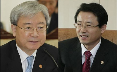 김석동 금융위원장(왼쪽)과 권혁세 금융감독원장 내정자(사진-연합뉴스)