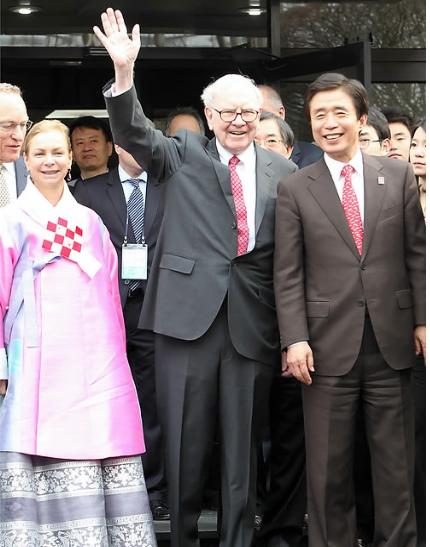이날 조찬에는 버핏 회장과 김 대구시장을 비롯해 에이탄 베르타이머 IMC그룹 회장 부부, 모셰 샤론 대구텍 사장, IMC그룹 관계자 등 10명이 함께했다. (사진=연합뉴스)