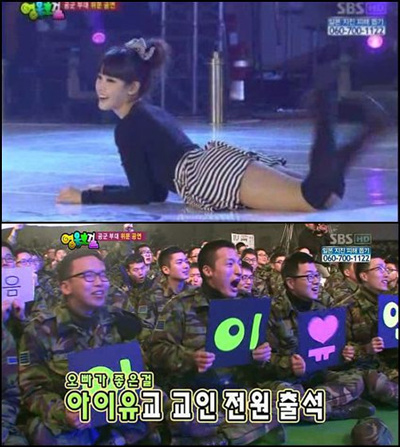 아이유는 지난 20일 SBS '일요일이좋다-영웅호걸'에서 '공군 20비행단'을 방문해 장병들을 위해 특별한 위문공연을 가졌다.