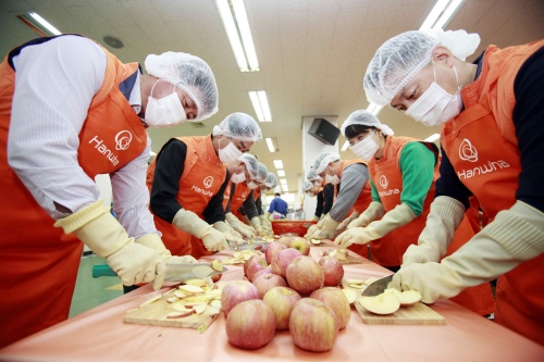 URL복사 기사공유하기 스크랩 프린트 메일보내기 글씨키우기 한화그룹(회장 김승연) 신임 임원들이 노인복지센터 자원봉사활동으로 임원활동 신고식을 치렀다. 한화그룹은 서울∙경인지역 신임 임원 33명이 22일 서울 종로구 경운동에 소재한 서울노인복지센터에서 어르신 2천여명을 대상으로 무료급식을 실시했다고 밝혔다. 사진은 한화 임원들이 어르신들께 후식으로 대접할 과일을 깎고 있는 모습. [biz&ceo뉴스/소비자가 만드는 신문=류세나 기자] 저작권자 © 소비자가 만드는 신문 무단전재 및 재배포 금지 류세나 기자 다른기사 보기 URL복사 기사공유하기 주요기사 "상담사 말대로 문 앞에 뒀는데 분실"…통신장비 위약금 부과 분통 배달앱 다회용기 서비스 늦장 회수로 불만 폭증 손보사들 '간병보험 특약' 출혈경쟁 괜찮나?...손해율 경고등 GS리테일 '25조 매출 목표' 절반 못 미쳐...해외 확장도 공수표 '수수료 완전 무료' 메리츠증권, 해외주식 거래 1.2조→160조 폭증 현대차, 중국 판매 '79만대→16만대' 추락 끝났나?...7년 만에 반등