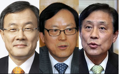 <왼쪽부터 이순우 우리은행장 내정자, 김용환 수출입은행장, 김정태 하나은행장.>