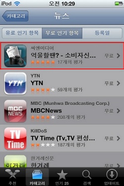 '소비자신문고' 어플이 애플 앱스토어와 안드로이드 마켓에 등록된 지 20여일 만에 앱스토어 '뉴스부문 무료어플 인기순위' 1위를 차지하며 기존 뉴스 어플의 순위를 뒤집어 놓은 것.