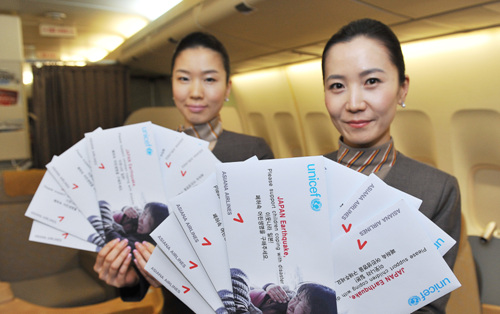 아시아나항공은 이번 캠페인을 위해 유니세프와 함께 제작한 '일본 긴급 구호'가 인쇄된 특별 모금 봉투를 제작했다. 아울러 '기부금 전액이 일본 긴급구호 기금으로 사용된다'는 기내 방송을 통해 캠페인을 고객들에게 알릴 계획이다.