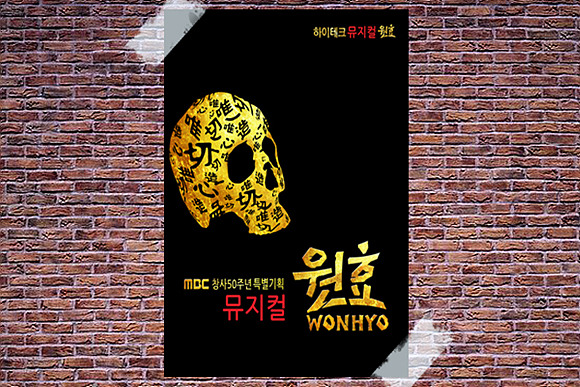 포스터는 흔하디 흔한 공연 날짜와 장소 정보도 감췄다. 조금은 비어 보이기도 한 그 곳에 ‘하이테크’라는 생소한 문자를 적어 놓았다. 제목 이외에 써넣은 글이 출연자, 제작진 등이 아니라 ‘하이테크’라니, 뮤지컬 ‘원효’가 더욱 궁금하다.