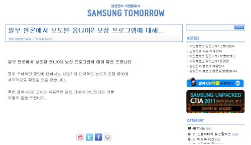 악화된 여론에 놀란 탓인지 삼성전자는 자사 공식 블로그를 통해 "일부 언론에서 보도된 '옴니아2' 보상 프로그램에 대해 현재 구체적인 방안에 대해서는 사업자와 다각적인 논의가 진행 중"이라며 "세부적으로 확정된 것은 없다"고 서둘러 밝혔다. 이어 "특히 갤럭시S로 교체는 처음부터 검토대상이 아니었다는 것을 말씀드린다"고 덧붙였다.