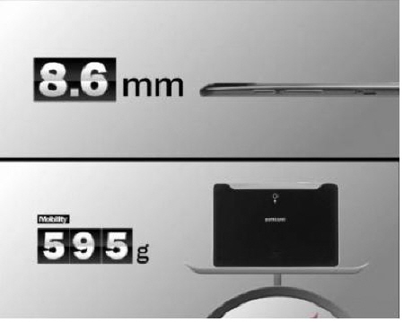 특히, '아이패드2'가 출시되며 좌중을 가장 놀라게 했던 두께와 무게 등 외관상 특징 부분에선 한발 더 나아갔다. 측면 두께가 8.6㎜로 현존 최소 두께를 자랑하는 아이패드2보다 0.2㎜ 얇고, 무게는 3G모델 기준 10.1인치형은 595g·8.9인치형은 470g으로 아이패드2와 비교해 20g이 더 가벼워졌다.