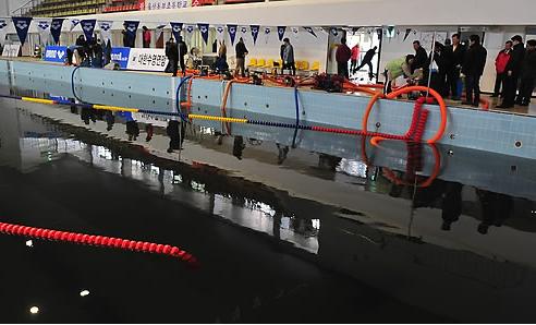 24일 제6회 한라배 전국수영대회가 열릴 예정이던 이 경기장 실내 수영장에는 다이빙과 싱크로나이즈 경기가 치러질 2개 풀장이 시커먼 먹물로 변했다. 25일로 예정된 경기도 26일로 연기됐다.