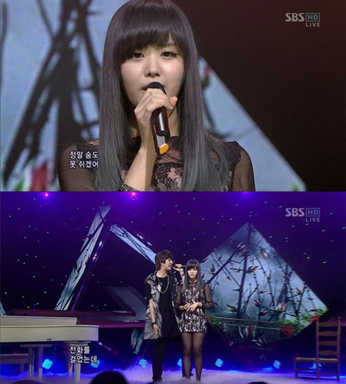 걸그룹 시크릿의 메인보컬 송지은이 훈남 래퍼 방용국과 환상적인 무대를 펼쳐 화제다.