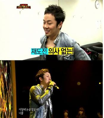 김건모의 재도전 논란으로 비판을 받고 있는 MBC ‘나는 가수다(나가수)’에서 정엽이 최초 탈락자로 선정됐다.