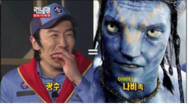 큰 키에 파란색 옷을 입어 아바타와 싱크로율 100%를 자랑한 이광수는 영화 속 아바타를 흉내내는 재치를 발휘해 출연진들은 물론 시청자들까지 큰 웃음을 선사했다.