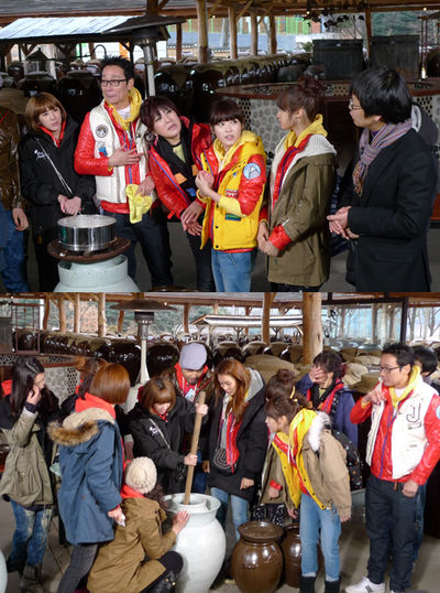 이날 멤버들은 전통주 전문업체 관계자의 지도에 따라 산사주 원료인 산사 열매를 원료로 한 전통 막걸리 제조 과정을 체험했다.
