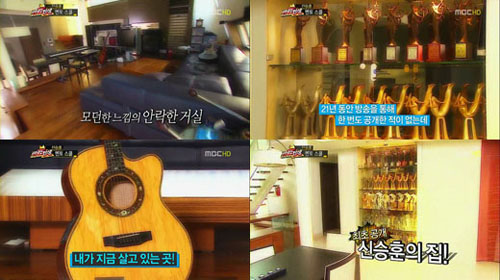 공개된 신승훈 집은 깔끔하고 호화스러운 인테리어가 눈길을 끌었다. 또한 셀 수 없을 정도로 많은 트로피가 시청자들의 눈길을 끌었다.
