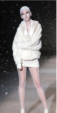 마네킹 몸매라 불리는 지나는 이날 백발 헤어와 함께 하의 실종 패션을 선보여 각선미를 부각시키며 신비한 느낌을 보여주었다.