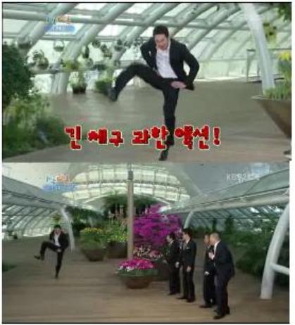 이어 엄태웅은 자신의 차례에 파격적인 코믹 댄스를 선보여 촬영장을 웃음 바다로 만들었다. 엄태웅은 춤을 춘 후 민망해 하며 강호동과 멤버들에게 안겼다. 이어 등장한 이승기 역시 코믹댄스를 선보여 웃음을 자아냈다.