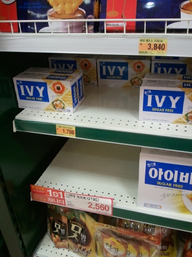 ▲한 대형마트의 과자매대. 크라운해태제과의 가격인상이 발표되자
