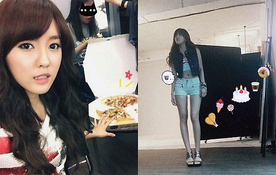 효민은 6일 자신의 트위터에 “세상에서 제일 힘든 인내심 기르기. 오늘도 피자의 유혹. 여름 의상이라 또 참아야만 했다. 악. 이제 한계다!”라는 글과 함께 두 장의 사진을 공개했다.