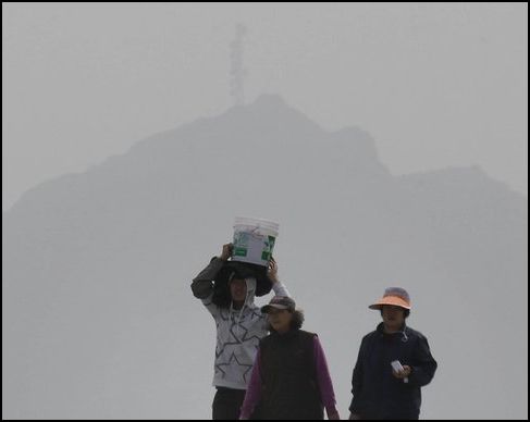 | <'방사능 비'에 황사까지 겹치면서 시민들의 불안이 가중되고 있다.> |