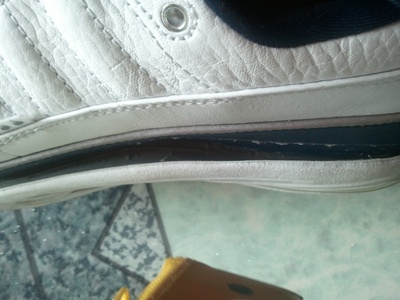 구입 당시 상품 태그(tag)가 보존된 새 제품이었으나, 아버지가 2일간 운동화를 신고 돌아온 뒤 보니 고무 겉창이 다 떨어져나가 너널너덜했다.
