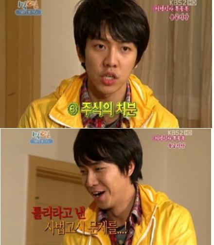 이승기가 맞춘 사법고시 문제는 '시장지배적 사업자의 남용행위와 관련된 독점규제 및 공정거래에 과한 법률상의 시정조치가 아닌 것은?'이라는 문제였다. 이 사법고시 행정학 문제를 강호동을 비롯한 다른 멤버들은 문제조차 이해하지 못했지만 엄친아로 소문이 난 이승기는 '3번 주식의 처분'을 선택하며 맞추었다.