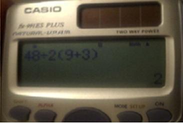 식은 언뜻 보면 단순하지만 48÷2를 먼저 계산하느냐 2(9+3)을 먼저하느냐에 따라 답이 달라진다