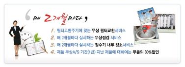 필터 무상 교환, 무상 청소, 무상점검, 무상 A/S의 서비스를 제공하며 무상 A/S기간이 지난 후에도 부품을 30% 할인해 교체해주는 서비스를 제공하고 있다.