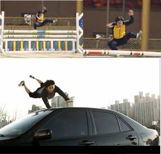 김병만은 이에 앞서 맨손으로 자동차 위를 뛰어넘는 액션도 선보여 화제를 모았다.