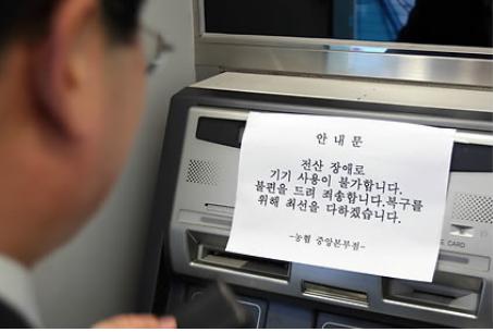 한편 농협은 전산 불통에 따른 고객 피해 보상방안을 검토하고 있는 것으로 알려졌다. 현금카드로 출금을 하지 못해 다른 은행 ATM을 이용해서 수수료를 냈거나 결제지연으로 연체이자가 발생할 경우 선별적으로 보상하는 방안을 검토중인 것으로 전해졌다. (사진=연합뉴스)