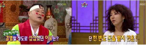 김완선은 "일한 댓가를 받아본 적이 없다. 13년간 단 한번도 돈을 받지 못했다"고 고백했다.