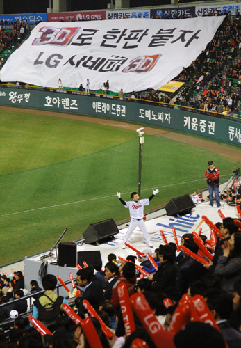 이는 경기장을 찾은 고객들에게 LG 시네마 3D TV의 우수성을 알리는 한편 한국마케팅본부 임직원들의 3D 시장 선도의지를 다지기 위해 마련됐다는 게 회사 측 설명이다.