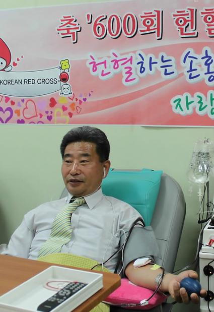 헌혈왕 손홍식씨가 600번째 헌혈 기록을 달성했다.