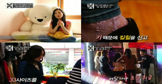 엄지녀는 “긴바지를 입으면 키가 작아 보여 핫팬츠를 즐겨 입고 사이즈도 23으로 줄여입는다”고 고백했다.