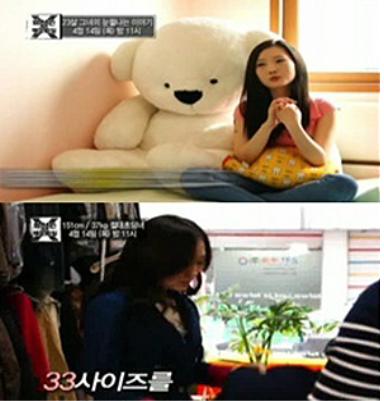 이어 발 사이즈도 210mm이라고 밝힌 그녀는 주로 아동화를 신고 옷도 아동복 사이즈가 맞다며 "긴바지를 입으면 키가 작아 보여 핫팬츠를 즐겨 입고 사이즈도 23으로 줄여입는다"고 고백했다.