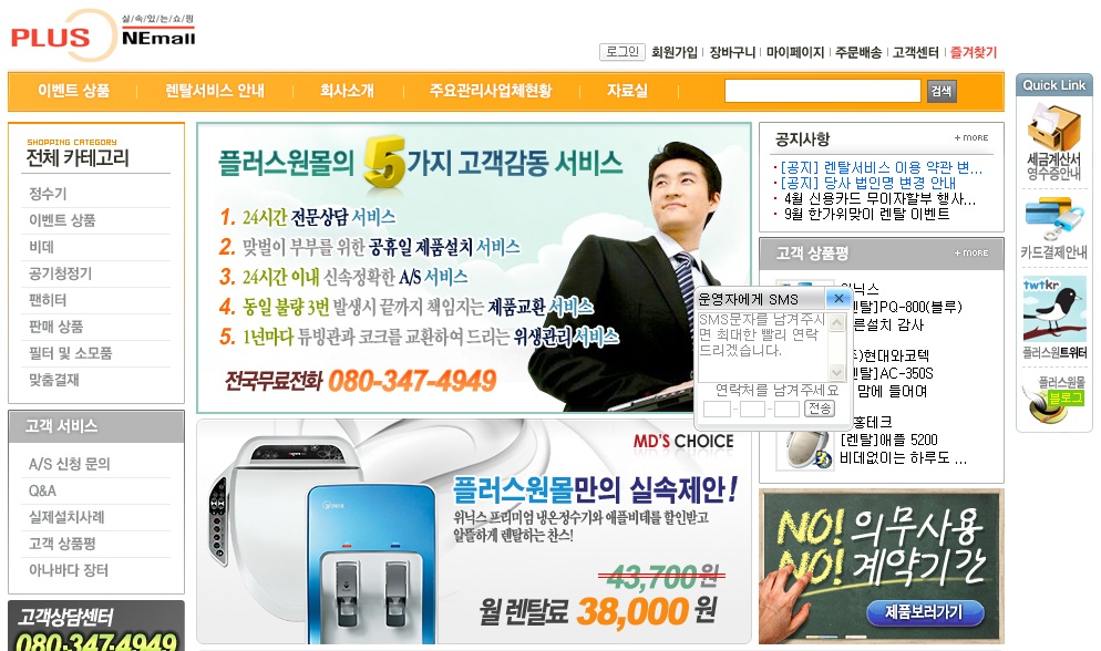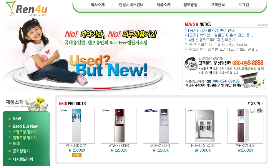 이 사이트는 메이저기업들의 방문판매라는 판매방식 때문에 고가로 책정될 수밖에 없었던 정수기 등의 렌탈료를 온라인 판매를 통해 대폭 낮췄다. 특히 여러 가지 상품을 혼합하여 이용하고자 하는 고객으로부터 큰 호응을 받았다.