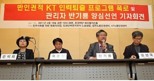 18일 서울 정동 환경재단에서 열린 '반인권적 KT 인력퇴출프로그램 폭로 및 관리자 반기룡 양심선언 기자회견'에서 반기룡 씨는 자신을 "1984년 11월 한국전기통신공사 공채 1기로 입사해 2009년말 퇴직한 관리자"라고 소개하며 "본사에서 내려온 '부진인력 퇴출 및 관리방안'을 통해 퇴출대상자를 관리해왔다"고 밝혔다.