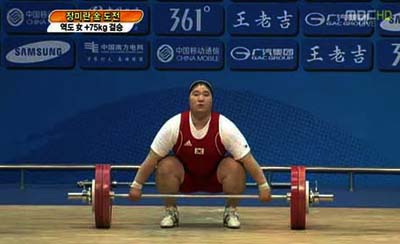 합계 327㎏은 장미란(28·고양시청)이 갖고 있던 세계기록을 1㎏ 늘린 것으로 장미란의 세계선수권 5연패를 저지한 셈이다.