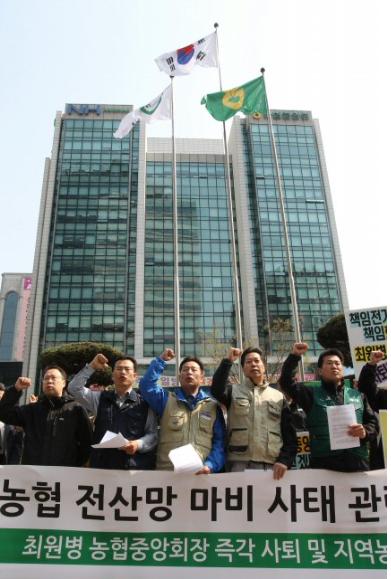 전국농협노조는 19일 농협 전산장애 사태와 관련, 최원병 농협중앙회장의 사퇴와 지역 농ㆍ축협 신용사업 부문의 독립전산망 구축 등을 요구했다.