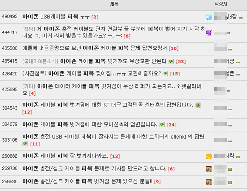 구입한지 얼마 안 된 USB케이블의 피복이 벗겨지는 현상이 잇달아 발생하면서 아이폰(아이팟) 사용자들이 불편을 겪고 있다.