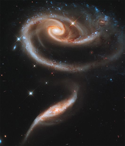 안드로메다자리에 있는 이 은하는 지구로부터 약 3억 광년 떨어진 곳에 위치한 'Arp 273'이다. 흐릿하게 연결된 두 은하가 마치 장미꽃을 연상케 한다. 특이해 보이지만 우주에서는 흔히 나타나는 것으로 알려졌다.