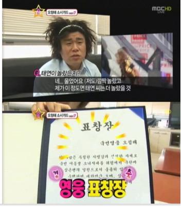 소녀시대 태연을 구한 오정태가 '영웅 표창장'을 받았다.