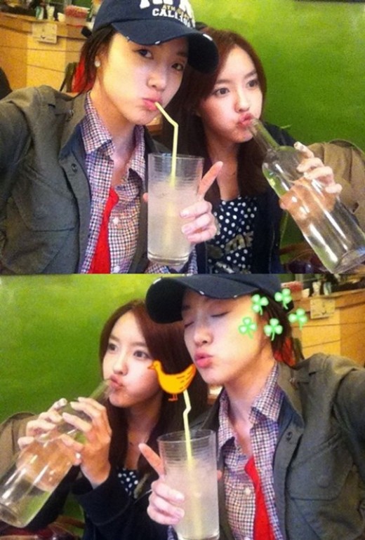 사진 속 두 사람은 한 카페에서 화장을 하지 않은 얼굴에 음료수를 마시며 즐거워 하고 있다.
