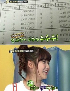 방송에서 아이유는 최근 화제가 된 송중기의 우월한 성적표와 관련해 리포터가 학교 성적을 묻자 “내 성적표에는 수우미양가 중에서 양가가 제일 많다”라고 솔직하게 말했다.