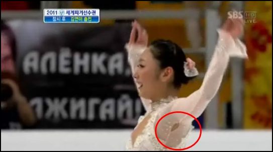 이날 그는 분홍빛 의상을 입고 넬라판타지아를 배경음악으로 무난한 연기를 선보였다. 하지만 무대가 끝난 후 관중들에게 인사하던 중 왼쪽 겨드랑이 부분이 찢어진 것이 포착됐다.