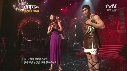 이하늬는 오페라 ‘삼손과 데릴라’의 ‘그대 목소리에 내 마음 열린다’를 불러 삼손을 해하기 위해 유혹하는 데릴라를 소화해 냈다.