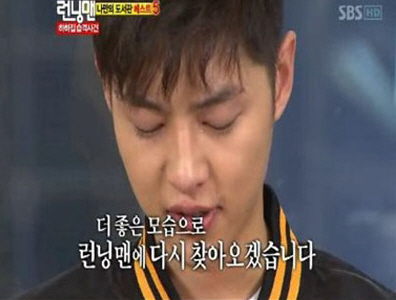 탤런트 송중기가 ‘런닝맨’을 하차하며 눈물을 흘렸다.