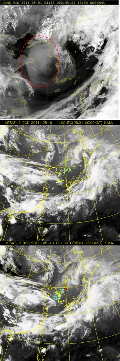 기상청은 1일 한반도를 뒤덮은 황사를 담은 사진을 공개했다.