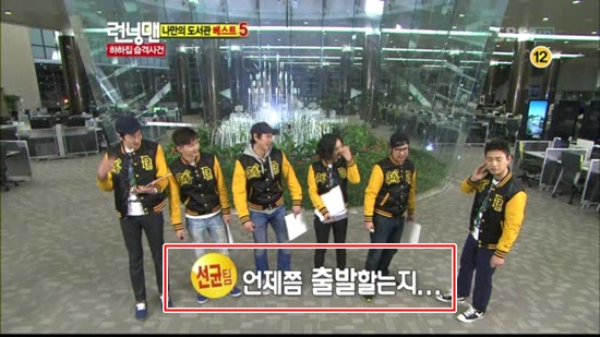 멤버들이 차례로 그림을 그려 맞추는 게임에서 이선균 팀이 계속 실패를 거듭하자 방송 하단에 '선균팀 언제쯤 출발할는지..'라는 자막이 등장했다.