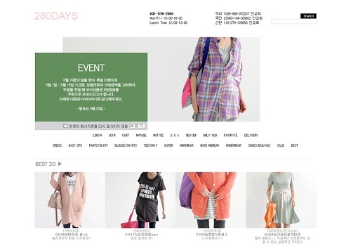 280데이즈는 출산 후에도 입을 수 있는 옷들로 가득 차 있어 예비 엄마들의 사랑을 받고 있는 쇼핑몰이다. 디자인을 무시하고 실용성만 부각했던 기존 임부복에서 벗어나, 늘 아름다움을 유지하고 싶어 하는 여성들에게 기분좋은 쇼핑의 기회를 제공한다.